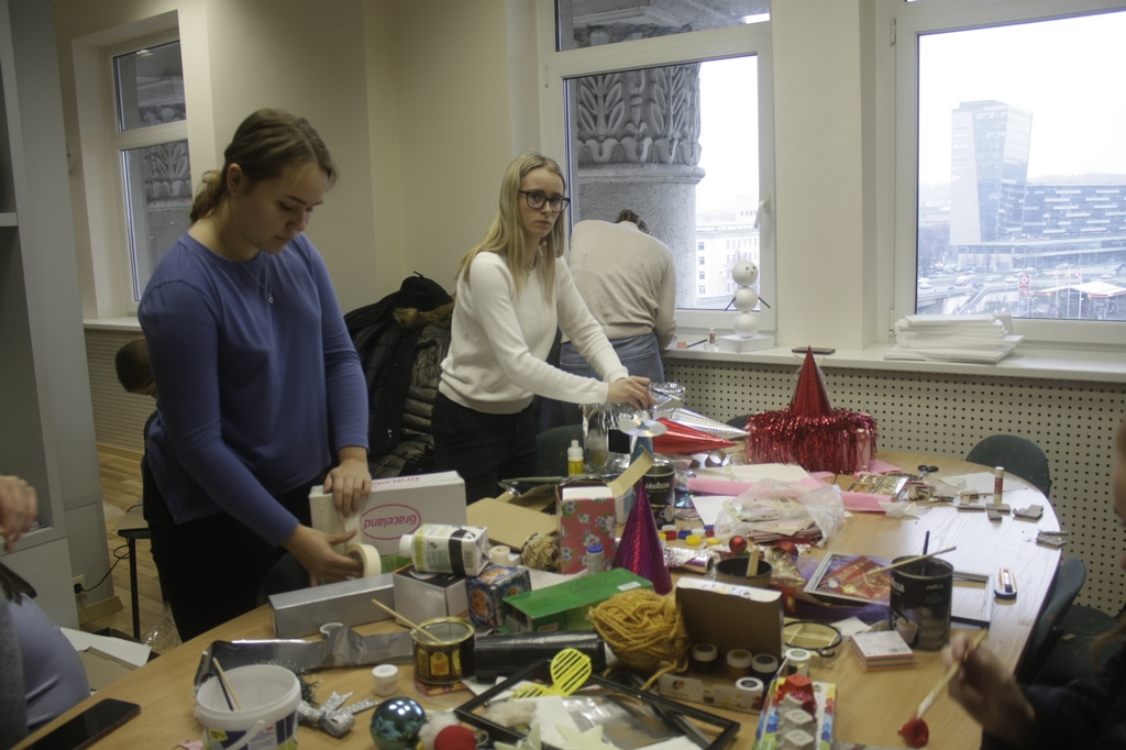 Kalėdinio miesto statybos pripildė fakulteto koridorius šypsenomis, šurmuliu. Pamatėme begalę įvairių antrinio dizaino idėjų ir supratome, kad mūsų fakulteto studentai labai išradingi, kūrybingi, meniški! Dėkojame tiems, kurie kūrė, dažė, lipdė ir pastatė miestą! Tikimės, kad visi dalyvavę ar matę Kalėdinį verslo miestą liko įkvėpti ruoštis šventėms tvariau ir būti draugiškais gamtai.