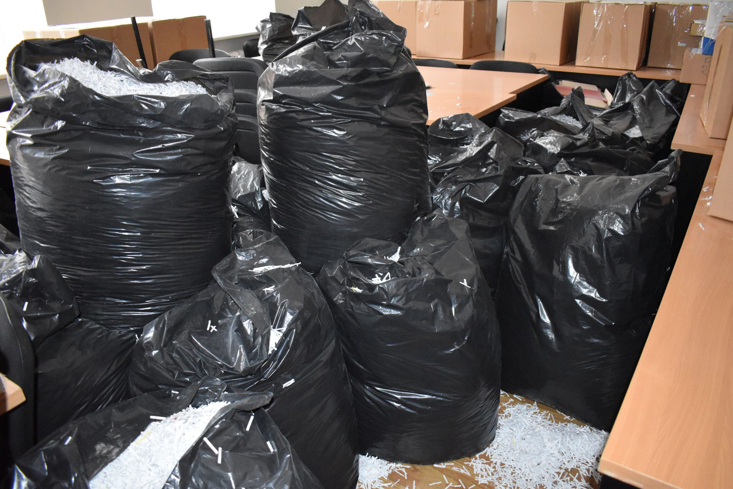 9 konteineriai makulatūros – 3 tonos perdirbamo popieriaus