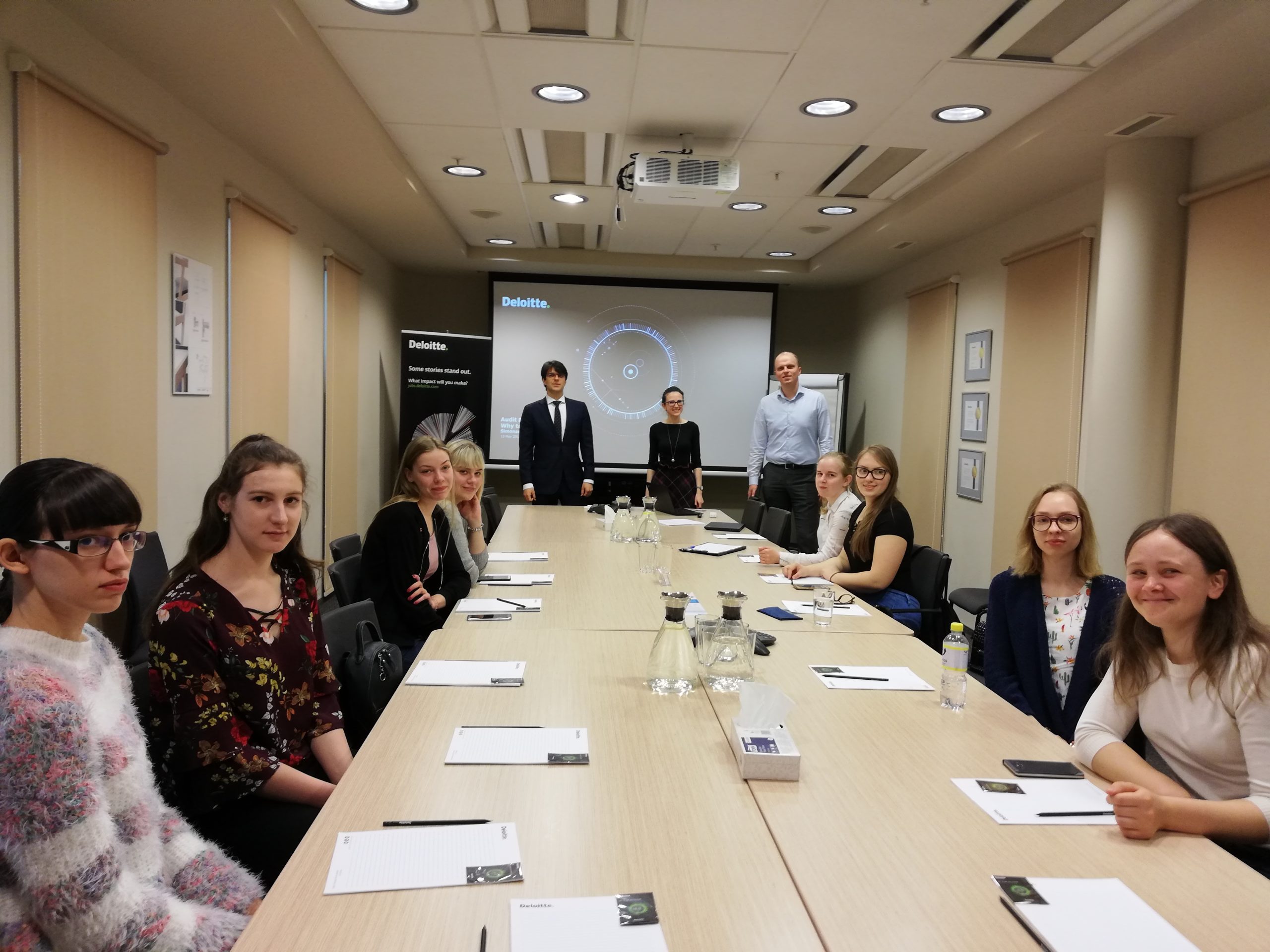 2019 m. gegužės 13 d. Deloitte Lietuva ofise lankėsi Buhalterinės apskaitos 2-ojo kurso studentai su lektore Birute Jukoniene. Juos pasitiko audito skyriaus direktorius Simonas Rimašauskas trumpai pristatęs auditoriaus profesiją, jos reikšmę modernioje visuomenėje ir kodėl verta tapti auditoriumi. Nerijus Snapkauskas, audito skyriaus vyresnysis projektų vadovas, kartu su studentais sprendė praktines užduotis bei atsakinėjo į jų klausimus. Atvykę į Deloitte Lietuva offisą, studentai sužinojo, kad auditorius – tai profesionalas, kurio pagrindinė užduotis yra išreikšti nuomonę apie finansinių ataskaitų teisingumą bei pastebėti ir atpažinti galimybes audituojamam subjektui tobulėti ir padidinti našumą. Dėl nuolat besikeičiančių reguliavimų, besivykstančių technologijų, nenumatytų situacijų – nuobodžių minučių auditoriaus dienotvarkėje nėra.