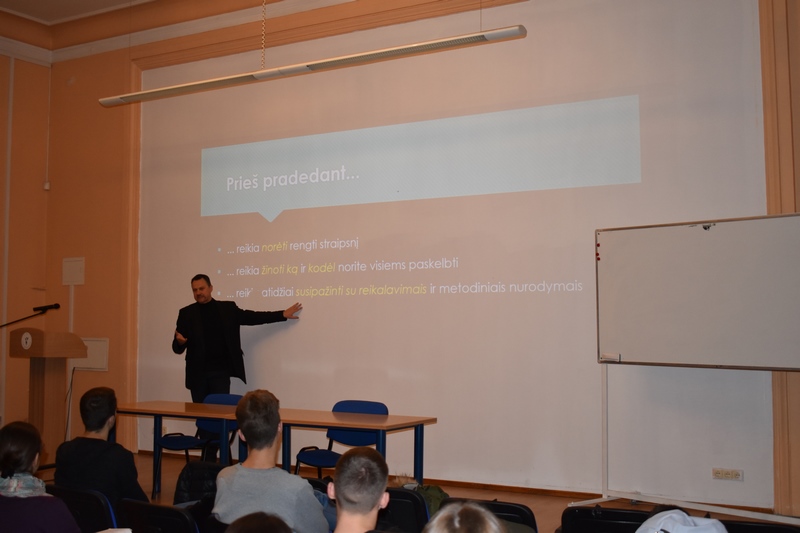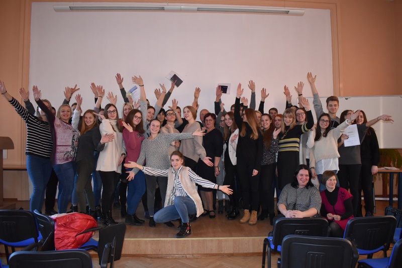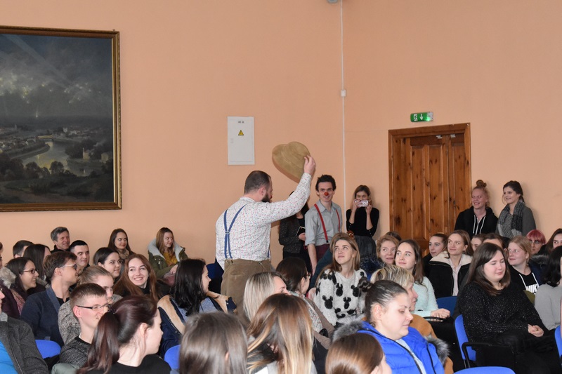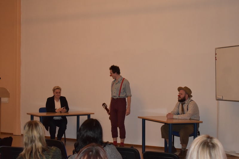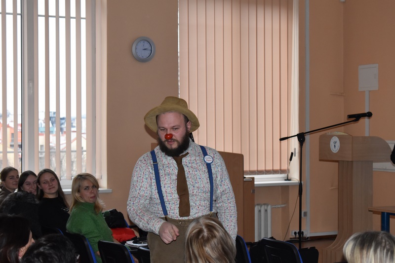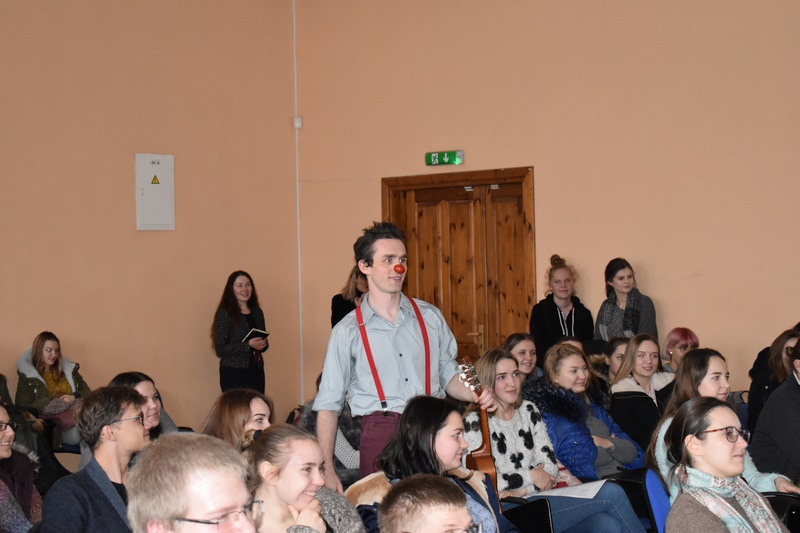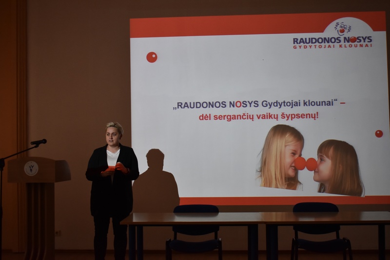 Susirinkusią auditoriją džiugino Gydytojų klounų pasirodymas. Studentai, dėstytojai ir administracijos darbuotojai dainavo, šoko ir dalinosi plačiomis šypsenomis! Gydytojų klounų komanda kvietė būti socialiai atsakingais, kvietė aukoti. Džiaugiamės, kad kartu galėjome prisidėti prie nuostabios RAUDONŲ NOSIŲ iniciatyvos, surinkdami 125,61 € Gydytojų klounų vizitams pas sergančius vaikučius.