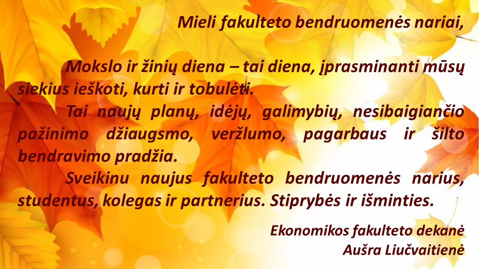 Ekonomikos fakulteto dekanės dr. Aušros Liučvaitienės sveikinimas su Mokslo ir žinių diena!