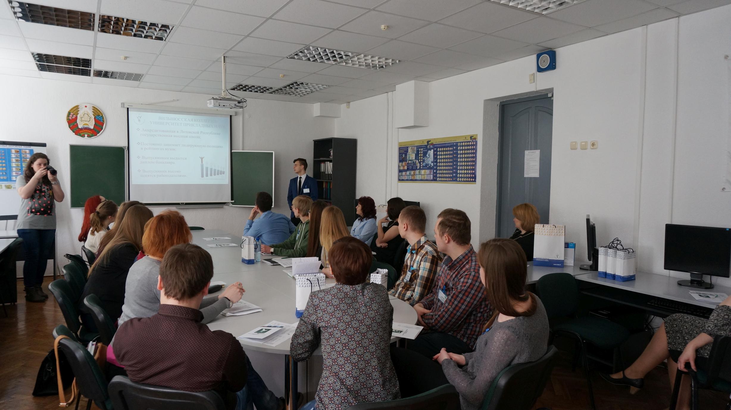 Vizito metu lektorės lankėsi 12-oje Pinsko vidurinėje mokykloje, kur 10-11 klasių mokiniams pristatė Vilniaus kolegiją bei angliškas studijų programas, kvietė mokinius studijuoti kolegijoje.