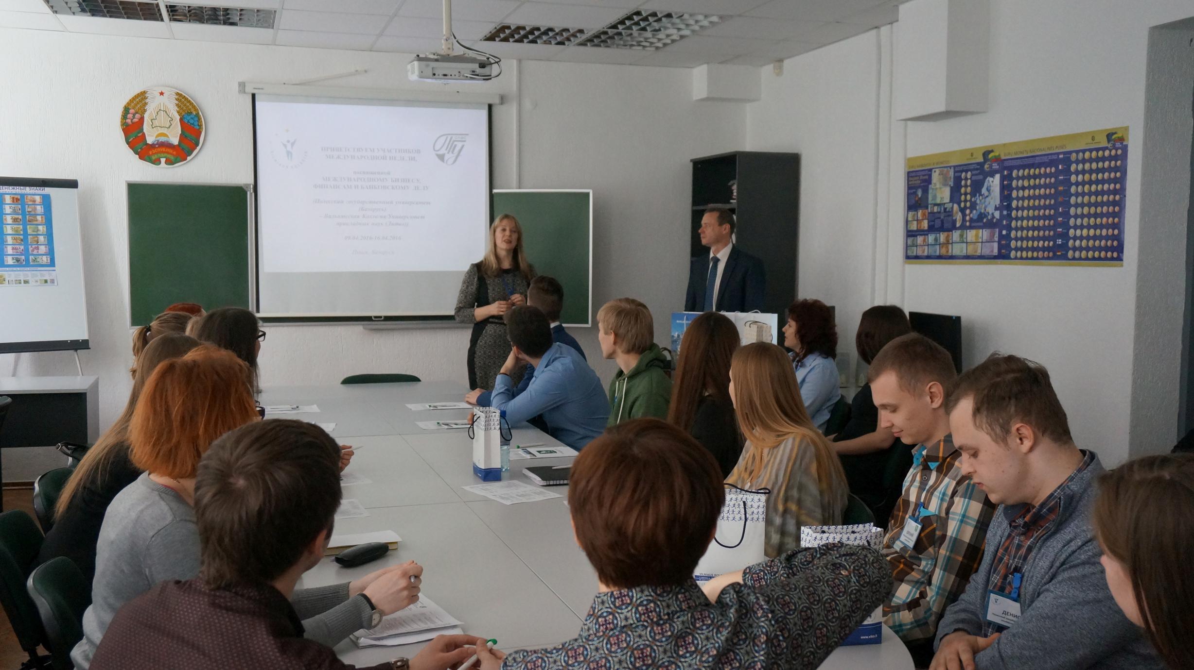 2016 metų balandžio 9-16 dienomis Ekonomikos fakulteto 10 studentų, Studijų organizavimo skyriaus vedėja, Ekonomikos katedros lektorė Rita Martišienė bei Ekonomikos fakulteto Erasmus koordinatorė, Ekonomikos katedros lektorė Danguolė Ignatavičiūtė buvo išvykę į Polesės valstybinį universitetą (Pinskas, Baltarusija, http://www.polessu.by/), dalyvauti tarptautinėje savaitėje, skirtoje tarptautinio verslo, finansų ir bankininkystės problemų nagrinėjimui. Renginys buvo organizuotas pagal 2014 m. spalio 14 d. pasirašytą Memorandumą.