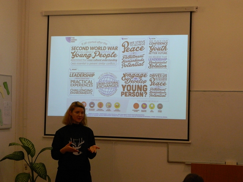2016 m. gruodžio 21 d. Global Volunteer organizacijos AIESEC atstovė Marija Pečiulytė supažindino studentus su organizacijos veiklos kryptimis ir nauju projektu „Open Lithuania“. Projekto tikslas padėti lietuvių jaunimui pažinti įvairių šalių kalbas ir kultūras. Tam tikslui organizuojami užsienio kalbų kursai: kinų, italų bei turkų.