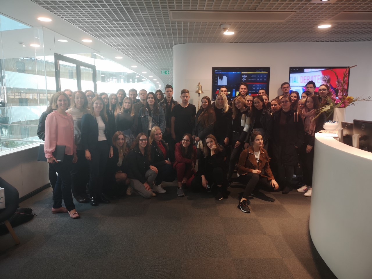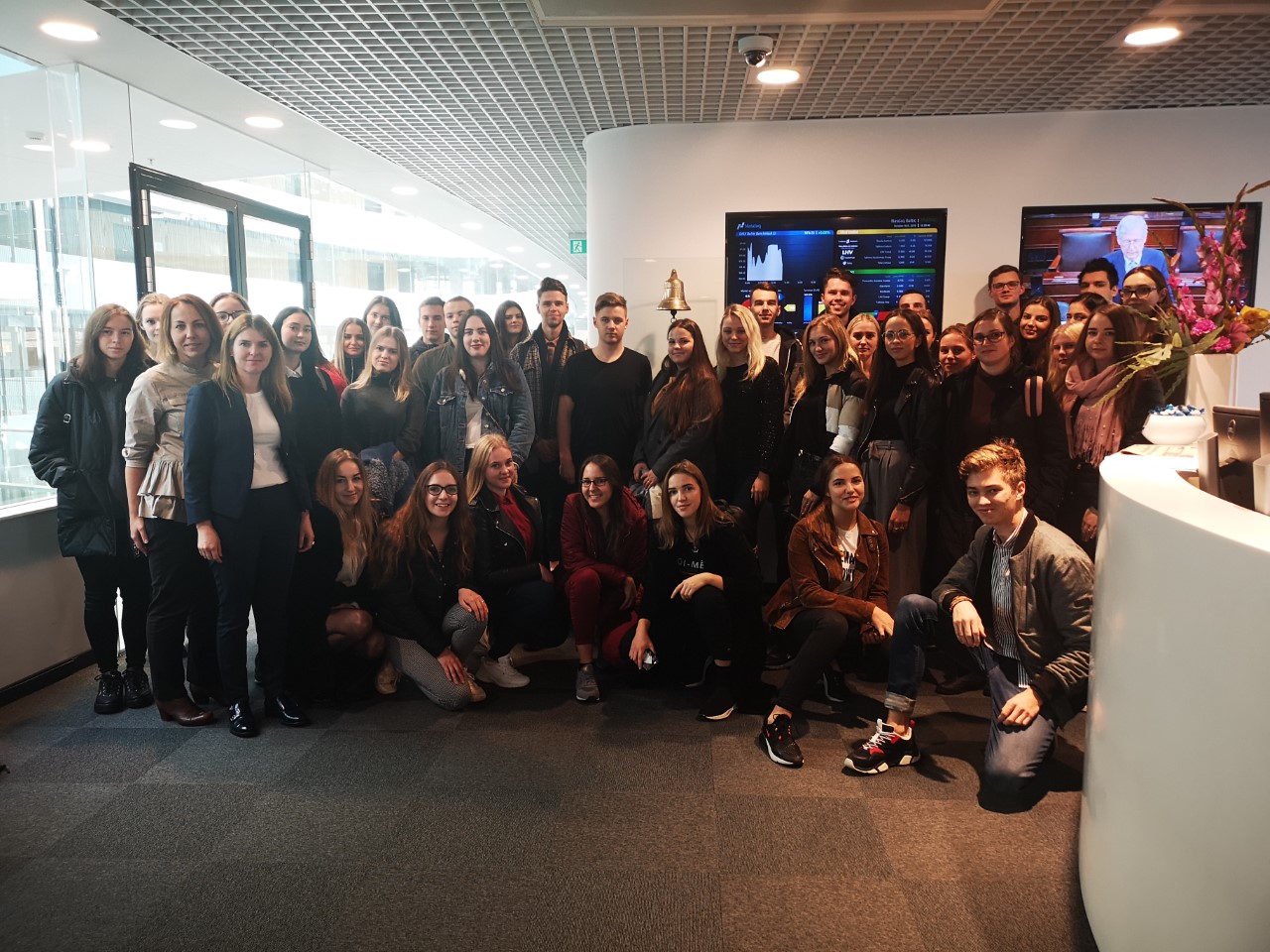2019 m. spalio 16 d. Ekonomikos fakulteto docentė dr. Dainora Gedvilaitė ir Draudimo katedros vedėja, lektorė Daiva Malakaitė kartu su antro kurso Finansų bei Investicijų ir draudimo studijų programų studentais lankėsi Vilniaus vertybinių popierių biržoje Nasdaq Vilnius. Vizito metu Emitentų priežiūros ir administravimo vadovė Simona Bačkienė studentus ir lektores supažindino ne tik su įmonės veikla, funkcijomis, bet ir su vidine įmonės aplinka bei tradicijomis. Daug dėmesio buvo skirta listingavimo temai ir reikalavimams įmonėms, papasakota apie pirmosios akcijų emisijos vykdymą, pristatyti pagrindiniai Nasdaq klientai Vilniuje ir supažindinta su Baltijos vertybinių popierių rinka. Studentus ypač sudomino investavimo galimybės, jie teiravosi, į kurių įmonių akcijas geriausiai būtų investuoti. Sužinoję apie Nasdaq Vilnius daug įdomios, dalykinės informacijos, studentai domėjosi ir praktikos galimybėmis šioje įmonėje.