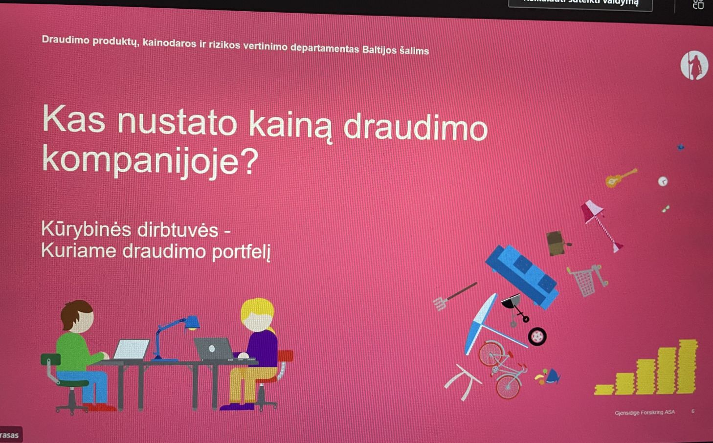 2021 m. kovo 1 d. Investicijų ir draudimo studijų programos studentai dalyvavo draudimo bendrovės „Gjensidige“ organizuotoje ir jau tradiciniu renginiu tapusioje Karjeros dienoje studentams. Pirmoje renginio dalyje draudimo įmonės atstovai papasakojo studentams apie Gjensidige ir pagrindinių įmonės departamentų veiklą. O antroje renginio dalyje studentai turėjo galimybę dalyvauti Draudimo rizikų valdymo ir Draudimo analitikos dirbtuvėse. Renginys buvo įdomus ir informatyvus, netrūko veiksmo ir prizų net ir dalyvaujant nuotoliniu būdu. Dėkojame Gjensidige komandai ir laukiame naujų susitikimų !