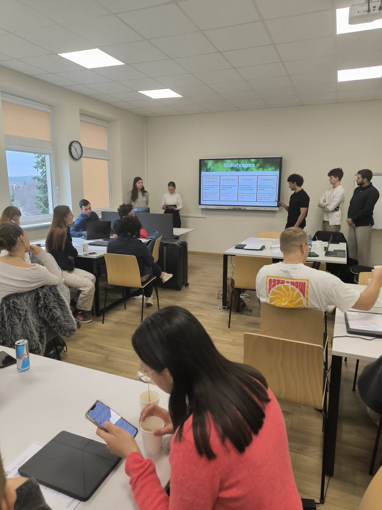 Baigiamuosiuose pristatymuose studentai analizavo savo šalių reikšmingiausias įmones, kurių tvarumo politika daro apčiuopiamą poveikį nacionalinei ekonomikai. Vienoje iš komandų nuskambėjo itin taikli įžvalga – jie nagrinėjo įmonę, gaminančią liftus, kuriais visą savaitę naudojosi Ekonomikos fakulteto svečiai. Tai tapo simboliška žaliųjų finansų ir kasdienybės sąsaja.