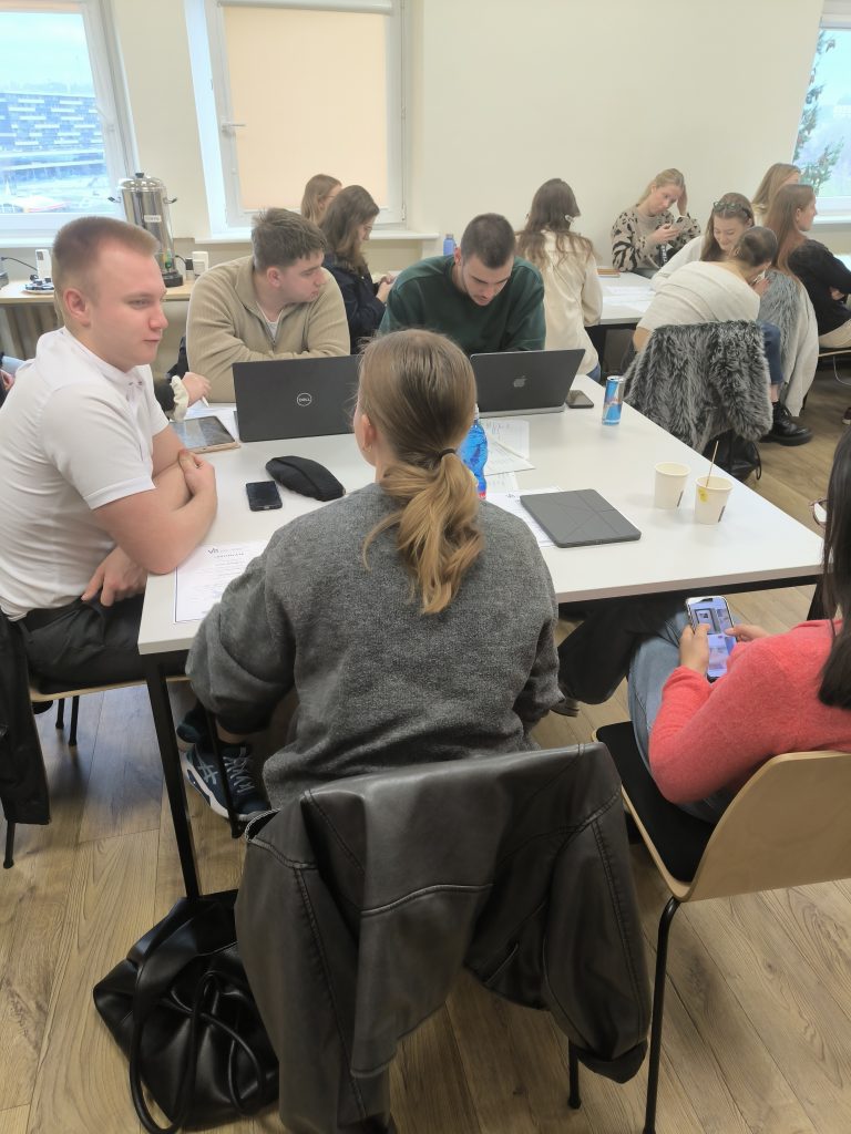 Trečiadienį studentai iš pradžių gilinosi į žaliųjų finansų teoriją, o vėliau lankėsi Rockit centre, kur susipažino su Lietuvos fintech sektoriumi, inovacijų ekosistema ir žaliųjų finansų taikymo pavyzdžiais. Nuo šios dienos komandos jau aktyviai rengė savo pristatymus pagal išklausytą medžiagą.