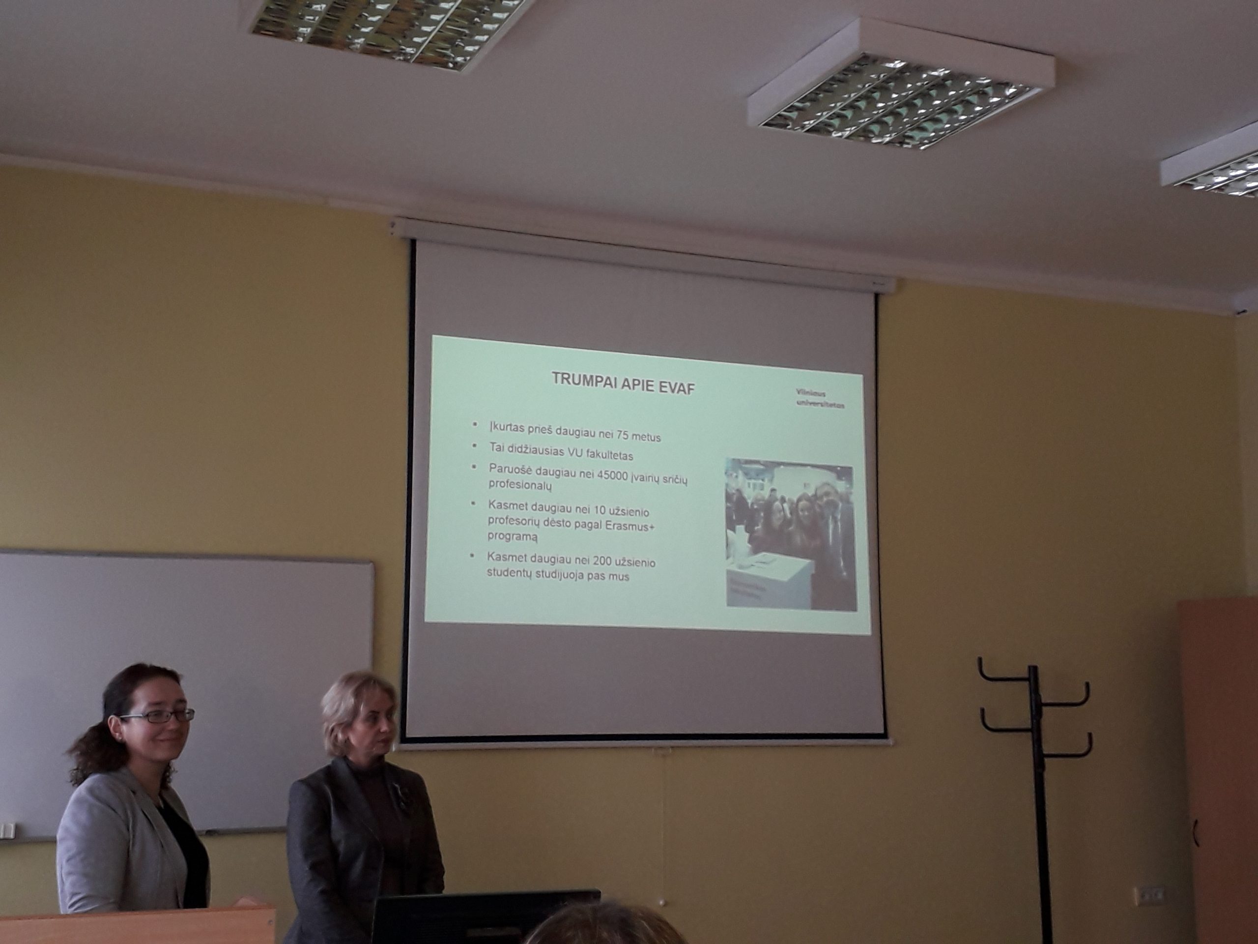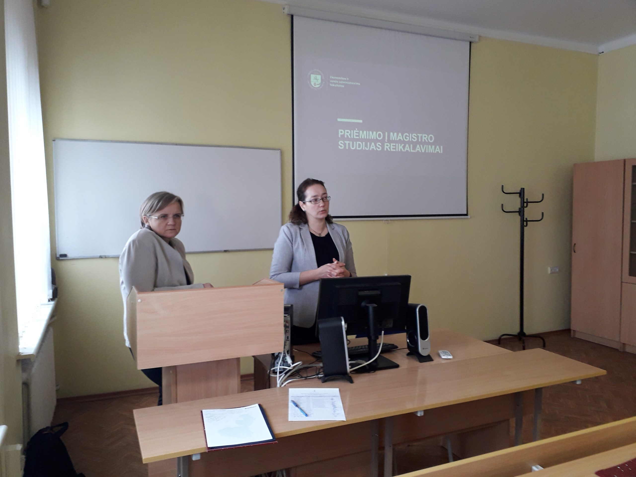 2018 m. sausio 22 d. Vilniaus kolegijos Ekonomikos fakulteto III-ojo kurso studentai klausėsi informacinio seminaro apie tolesnių studijų perspektyvas Vilniaus universiteto Ekonomikos ir verslo administravimo fakultete. Fakulteto dekanė prof. dr. Aida Mačerinskienė pateikė Lietuvos aukštojo mokslo studijų schemą bei mainų galimybes, prodekanė doc. Roma Adomaitienė plačiau aptarė dvylika magistrantūros studijų programų, o vyr. specialistė Daiva Budrienė papasakojo apie įstojimo į magistrantūros studijas etapus.