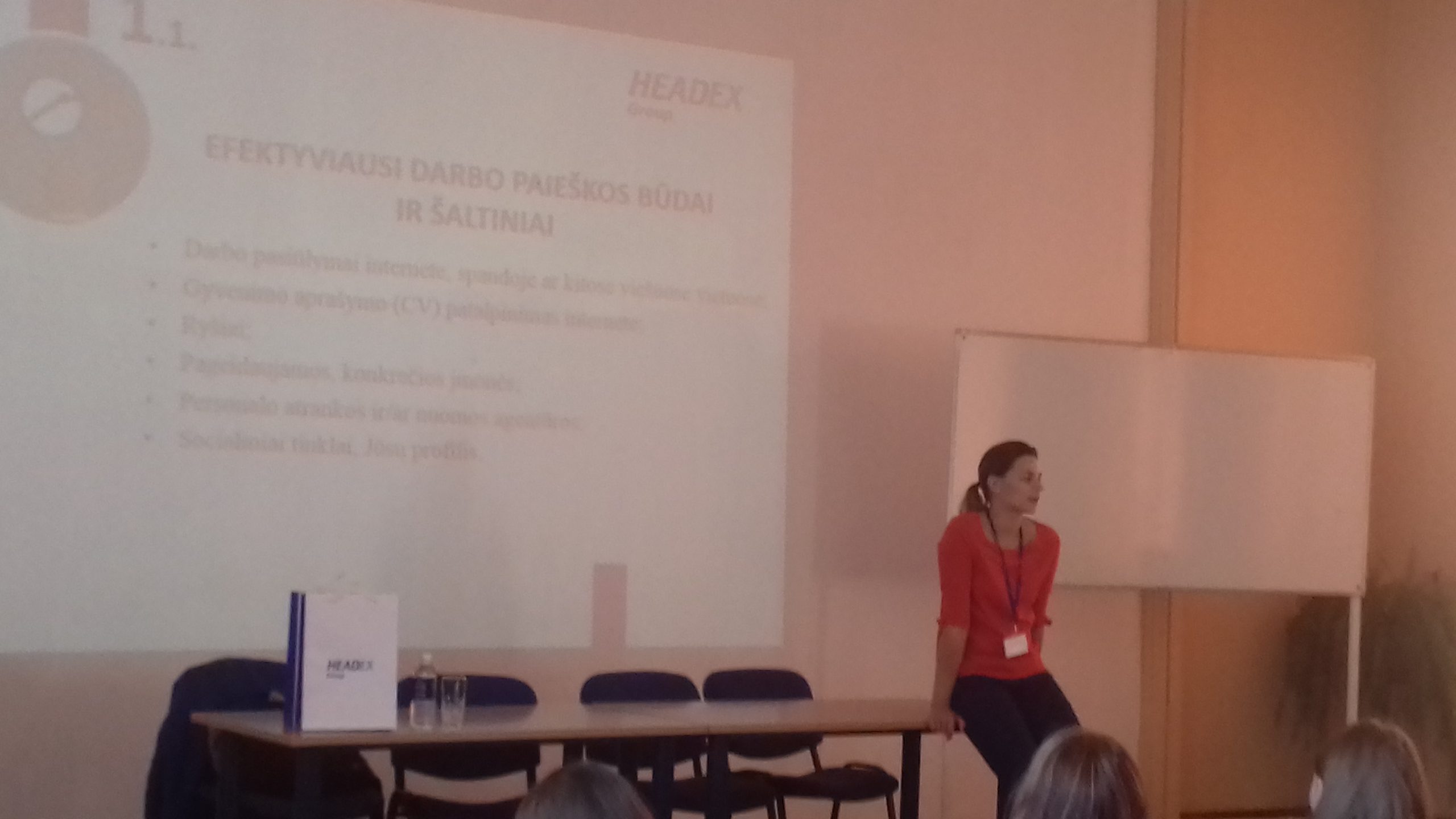 2017 metų spalio pirmąjį pirmadienį būrys Vilniaus kolegijos Ekonomikos fakulteto Buhalterinės apskaitos trečiojo kurso studentų turėjo galimybę dalyvauti charizmatiškos pranešėjos, UAB ,,Headex Group“ Atrankų projektų vadovės regionams Tomos Stonkienės seminare „Darbo paieška. Tinkamai ir efektyviai“.