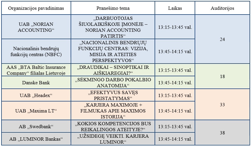 Kontaktų mugė: 11.00-13.00 val. 40 auditorija.