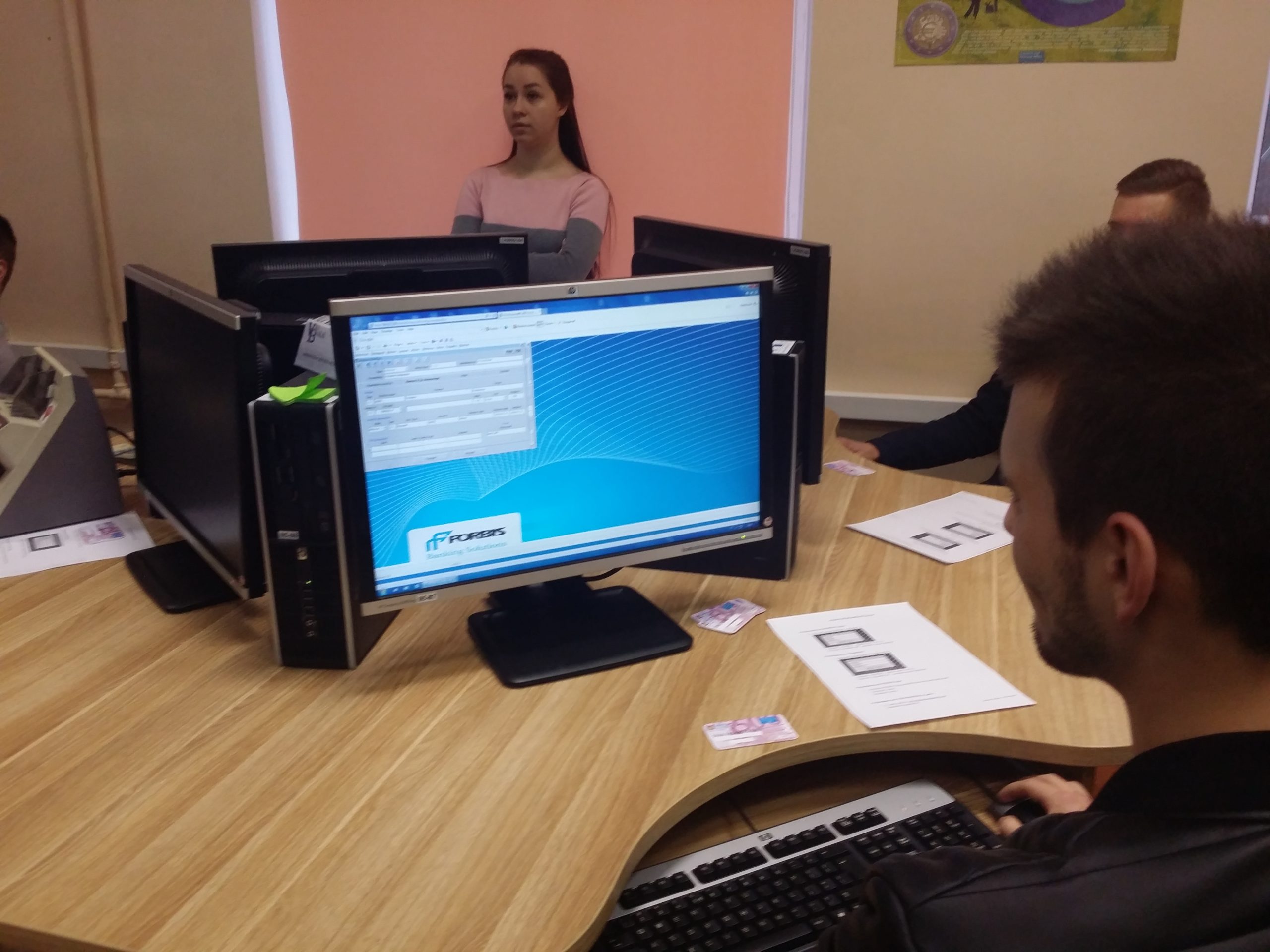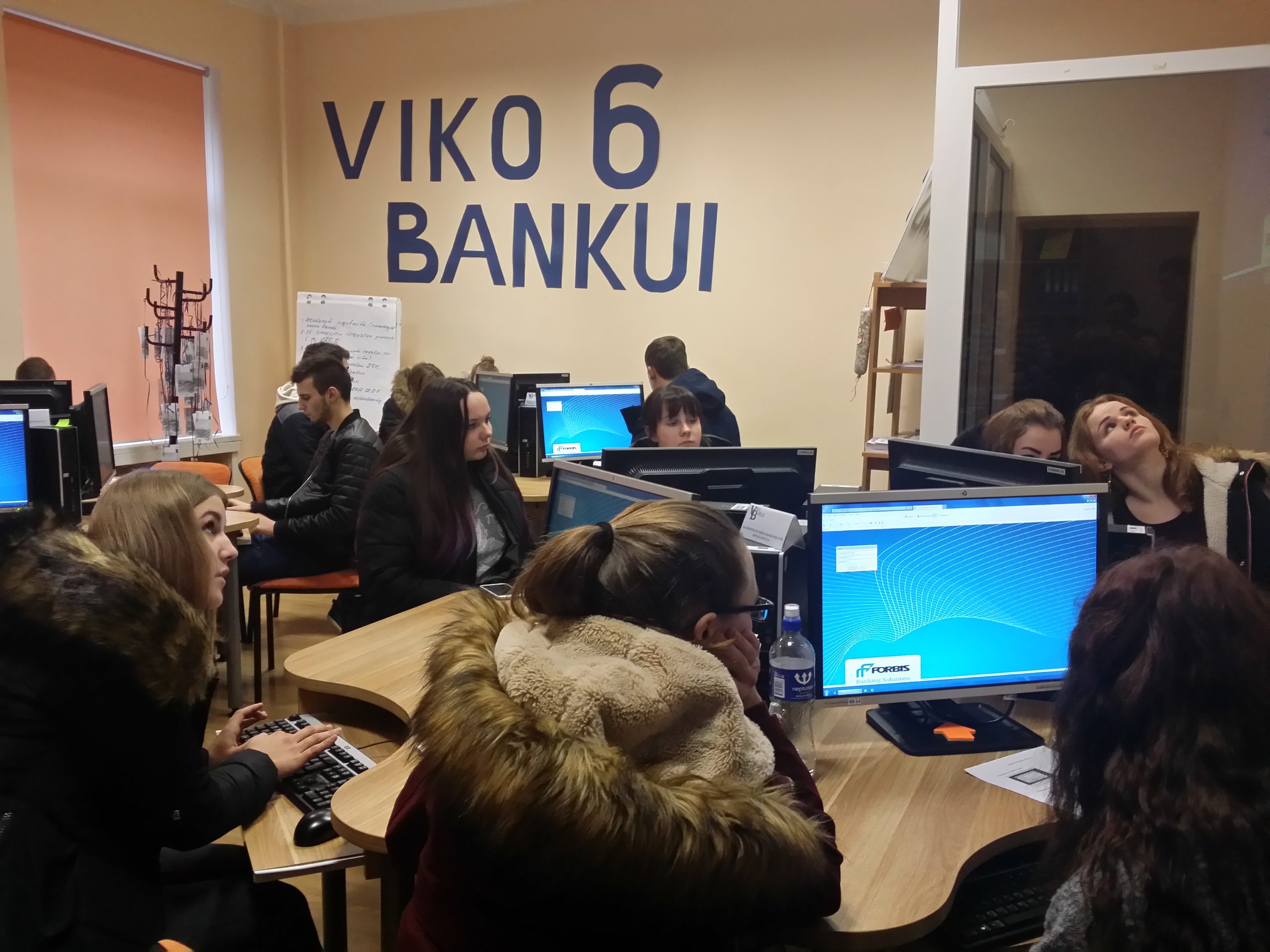 Po paskaitos mokiniai, kartu su lydinčiais mokytojais, buvo palydėti į imitacinę bendrovę „VIKO Bankas“, kur susipažino su bankuose taikoma informacine sistema Forpost bei atliko įvairias praktines užduotis, kurias paruošė Bankininkystės katedros lektorius ir imitacinės bendrovės „VIKO Bankas“ vadovas Alvydas Mackevičius.