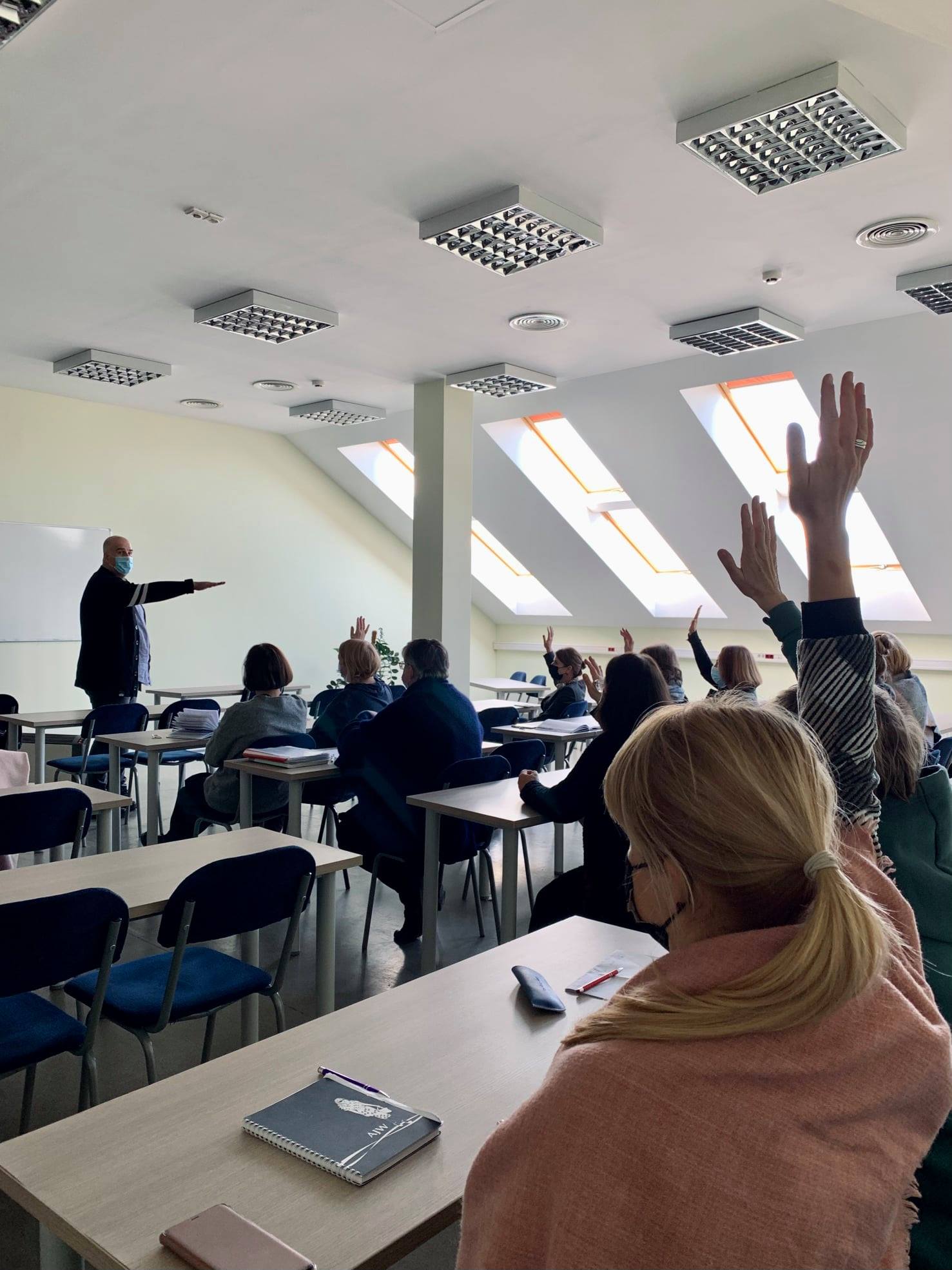Seminaro metu psichologas savo aktyviu bendravimu įtraukė visą auditoriją. Lektorius kalbėjo apie X, Y, Z, Alfa kartas, jų bendrus bruožus, didžiulius skirtumus. Kiekvienos kartos gyvenime kiekvienam, o ypač jaunam žmogui, labai svarbu turėti savo nuomonę ir ją pasakyti, rinktis pačiam ir už tai būti atsakingam, pasirinkti dominuojančias vertybes, bendravimo stilių. Tuo pačiu, jie, ypač dabartinės kartos atstovai, mėgstantys laisvę, jautrūs, nepastovūs, nežino, kas yra sunkus fizinis darbas, kito asmeninė nuomonė, priklausomi nuo tėvų, technologijų… Kokiai kartai priklauso dėstytojai…kaip bendrauti atskirų kartų atstovams… O ką daryti, kai jaunuoliai nieko nenori? – atsakymas: darbe nenaudoti manipuliacijų, ,,juodosios pedagogikos“ veiksmų, prievartos, nes tai yra didžiulė grėsmė santykiams su studentu, išmokti klausytis, vertinti, sukurti saugias mokymosi sąlygas, išmokti kantrybės, bendrauti… Norint kitus kažkuo sudominti, reikia pačiam būti motyvuotam, sveikam. Kaip dėstytojas gali sumažinti patiriamą įtampą darbe: mokėti atsitraukti nuo darbo ir rasti laiko kokybiškam poilsiui kasdien, svarbu iš lėto kurti savo mažąsias bendruomenes, kuriose galėtumėme tiesiog pabūti savimi, kuo daugiau vaikščioti, nes nuolatinis vaikščiojimas labai teigiamai veikia psichinę sveikatą ir pan. E. Karmazos patarimai įdomiai, gyvai pateikti, iliustruoti aiškiais pavyzdžiais bei praktiniais patarimais įsiminė seminaro dalyviams.