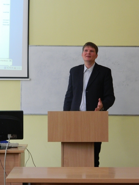 Antrąją seminaro dalį vedė UAB „Sėkmės sprendimai“ direktorius V. Satkauskas, kuris studentus supažindino su finansinės paramos verslo pradžiai šaltiniais, tokiais kaip savivaldybių teikiama parama, Europos Sąjungos struktūrinė parama bei kiti. Pranešėjas paminėjo į kokias organizacijas gali kreiptis asmuo, steigiantis savo verslą, kad gautų atsakymus į rūpimus klausimus. Akcentavo verslo plano parengimo būtinumą: verslo idėjos aprašymo bei skaičiavimų atlikimo svarbą, kad verslas būtų įsteigtas ir reikiamai integruotas rinkoje. Pranešėjas atsakė į susirinkusiųjų klausimus bei palinkėjo visiems kuriantiems savo verslą pasinaudoti finansine parama, kuri būtų vienas iš verslo finansavimo šaltinių, tačiau ne vienintelis.