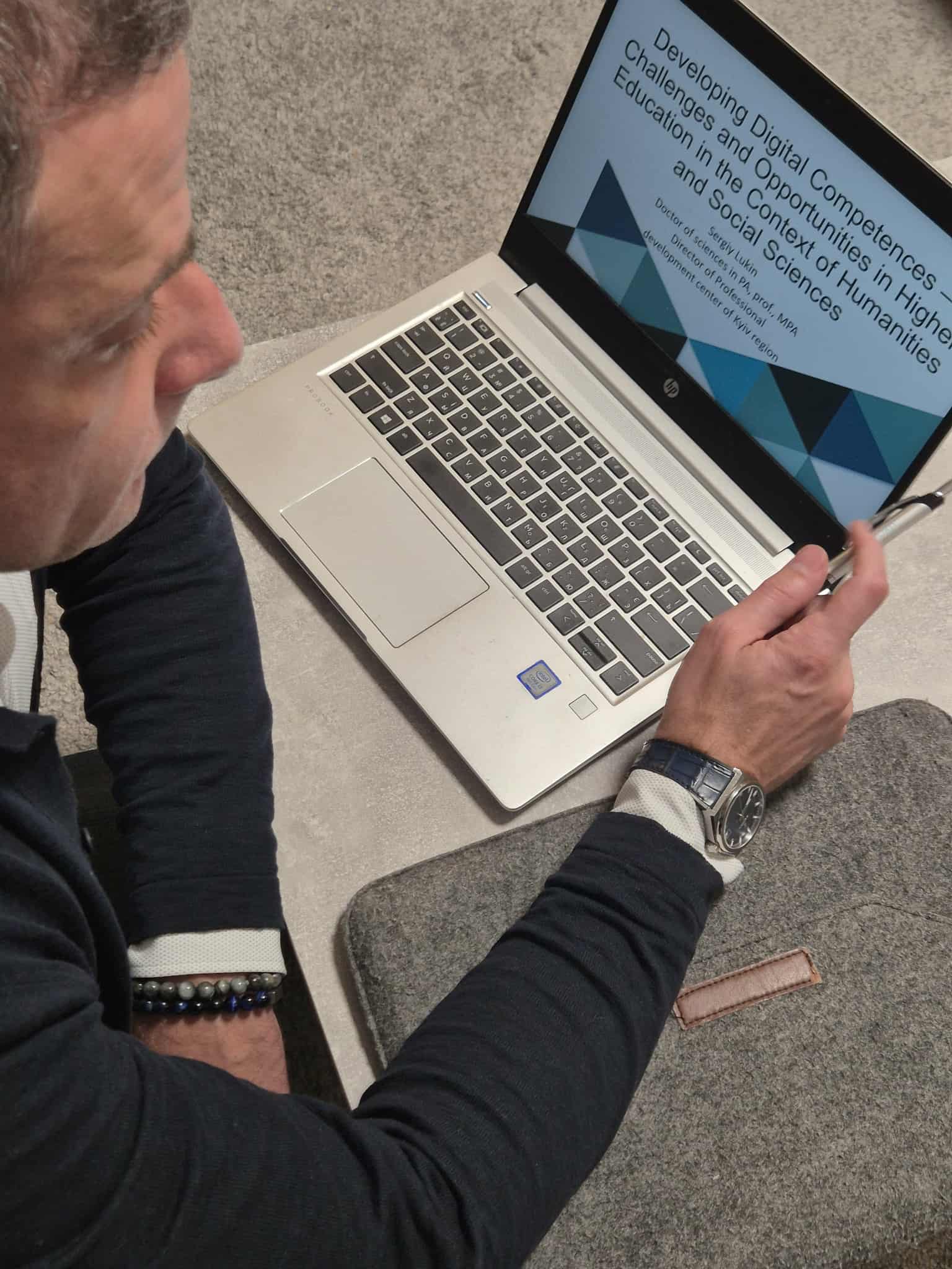 Dr. Sergiy Lukin, Kyjivo regiono Profesinio tobulinimo centro direktorius ir dėstytojas (Ukraina), skaitė paskaitą „Developing Digital Competences – Challenges and Opportunities in Higher Education in the Context of Humanities and Social Sciences“. Jis analizavo, kaip skaitmeninės technologijos keičia aukštojo mokslo turinį, ypač socialinių ir humanitarinių mokslų srityse, bei kokių įgūdžių reikia šiuolaikiniams specialistams.