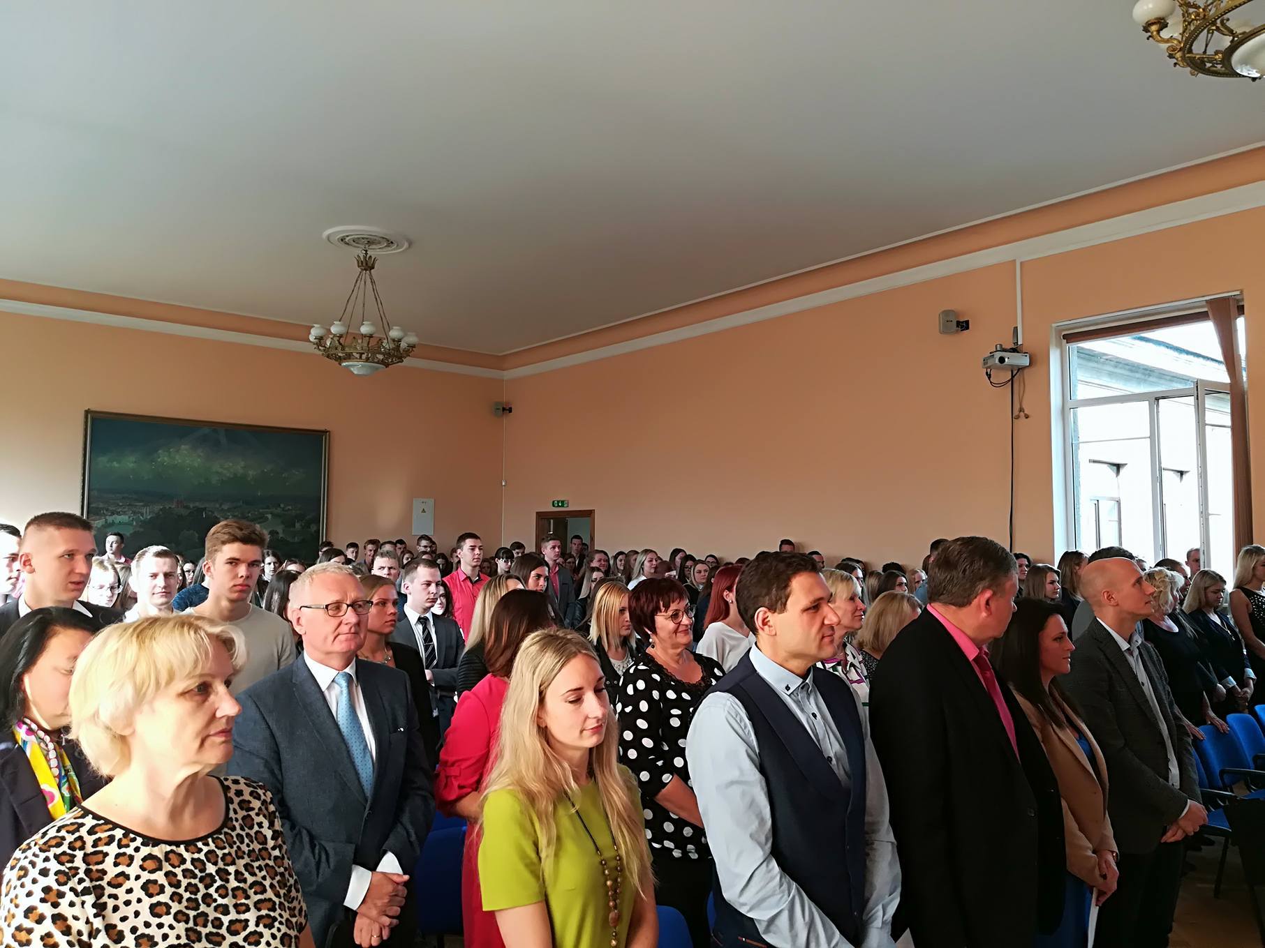 Kaip ir kiekvienais metais, studentų himnas „Gaudeamus igitur“ tampa naujų mokslo metų pradžios simboliu. Muzikos skambesiui nutilus, sveikinimo žodį tarė Ekonomikos fakulteto dekanė Asta Pikelienė, kuri studentams, dėstytojams ir visai fakulteto bendruomenei palinkėjo darbingų, kupinų įkvėpimo ir atradimų, sėkmės metų, tarpusavio supratimo, kūrybingumo, neblėstančios energijos visuose darbuose bei sumanymuose.