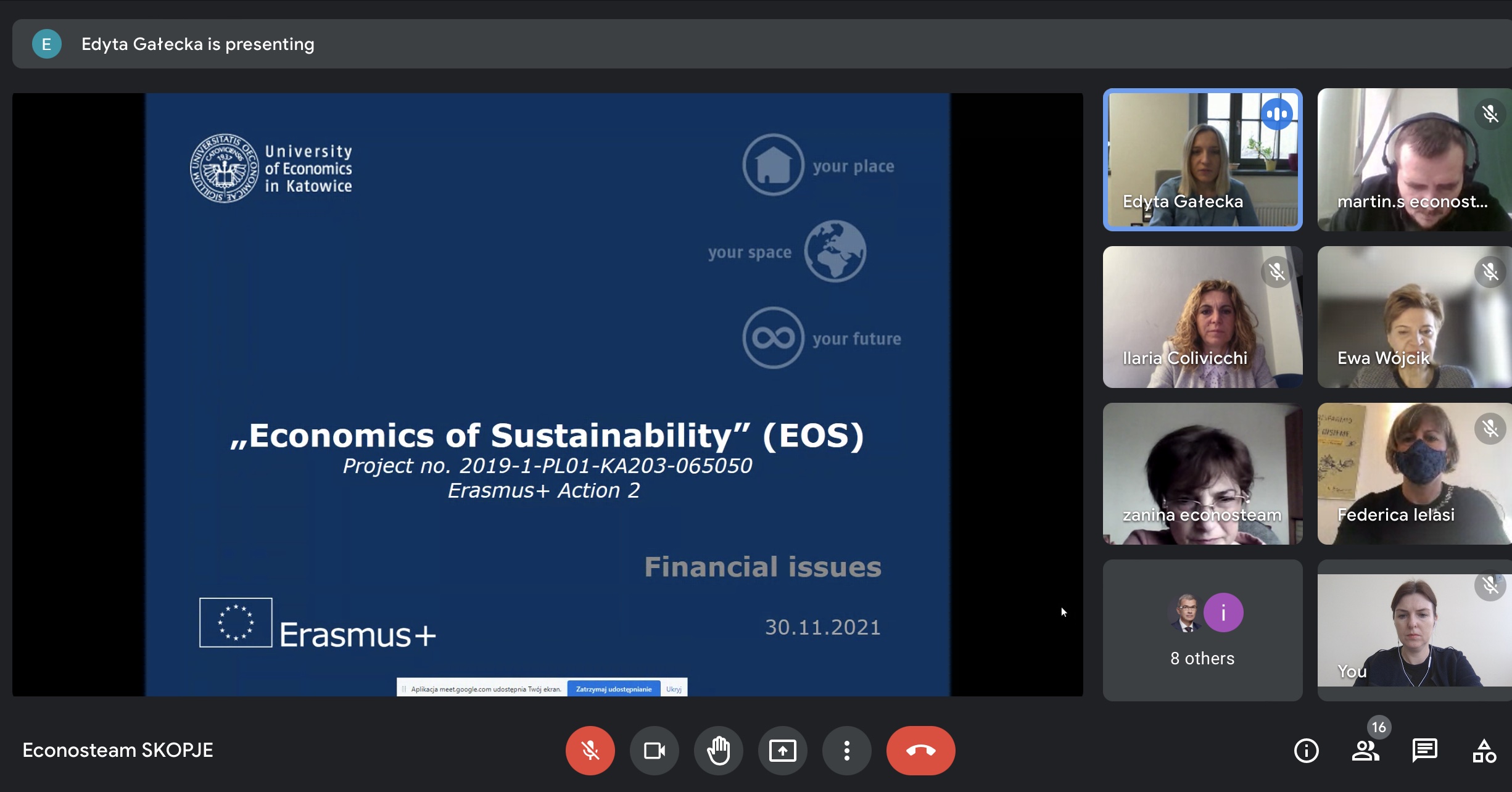 2021 m. lapkričio 30 d. įvyko tarptautinio projekto „Economics of Sustainability“ dalyvių nuotolinis susitikimas. Susitikime dalyvavo Ekonomikos fakulteto dėstytojai: dr. Dainora Gedvilaitė, Jovita Leščiuvienė, dr. Neringa Slavinskaitė ir dr. Tadas Gudaitis. Pagrindinis susitikimo klausimas buvo skirtas galutinio rezultato (žaidimo platformos) įgyvendinimo aptarimui, numatytos šio etapo gairės. Didelis dėmesys skirtas 2022 m. birželio 1–2 d. vyksiančios tarptautinės konferencijos, kuria užsibaigs vykdomas projektas, organizavimo klausimams: aptartos konferencijos temos, publikacijų leidyba, konferencijos pagrindiniai pranešėjai, dalyvių skaičius ir kita aktuali informacija.