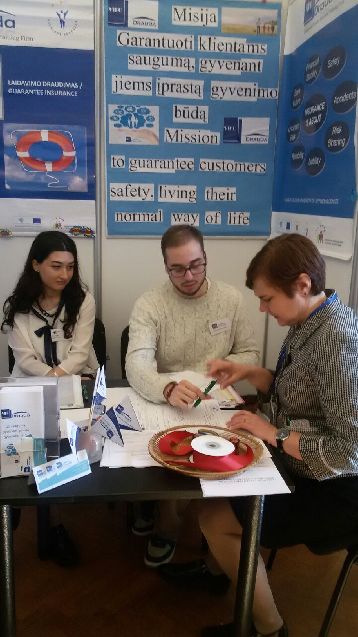 Vilniaus kolegijos Ekonomikos fakulteto VPMF „VIKO Drauda“ šiais metais atstovavo išskirtinė tarptautinė komanda, kurios gretas papildė Miguel Angel Munoz Barrera (Ispanija) ir Frederico Goncalves (Portugalija), studijuojantys pagal tarptautinę mainų programą Erasmus+. VPMF „VIKO Drauda“ komandai teko apdrausti visas mugėje dalyvaujančias įmones bendrosios civilinės atsakomybės draudimu, kuris įmonėms-dalyvėms buvo privalomas. Taip pat draudimo paslaugos buvo suteiktos mugės svečiams bei praktinio mokymo firmų darbuotojams. VPMF „VIKO Drauda“ pristatė draudimo verslą, įsigijo prekių ir paslaugų bei pasirašė bendradarbiavimo susitarimus pirkti-parduoti prekes bei paslaugas.