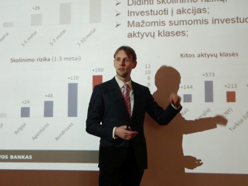 Įžanginį žodį tarė ir visus susirinkusius į jubiliejinį renginį pasveikino Ekonomikos fakulteto prodekanė Nijolė Kašėtienė. Lietuvos banko Bankininkystės tarybos direktorius Mindaugas Vaičiulis skaitė paskaitą apie šių dienų investavimo subtilybes. Pranešimo metu kalbėta apie Lietuvos banko pagrindines funkcijas, o taip pat aptartas pinigų politikos vykdymas. Pranešėjas paminėjo investicinės grąžos padidinimo variantus: investicijų trukmės ilginimas, skolos rizikos didinimas, investicijos į akcijas ir mažų sumų investicijos į kitas aktyvų klases. Po svečio pranešimo Vilniaus kolegijos Ekonomikos fakulteto Investicijų ir draudimo studijų programos studentas, „VIKO Drauda“ valdybos narys Arvidas Tumasonis (ID13A gr.) pristatė Verslo praktinio mokymo firmos „VIKO Drauda“ veiklą per 5-erius metus, o „VIKO Bankas“ organizuotus renginius aptarė Bankininkystės studijų programos studentas, „VIKO Bankas“ valdybos narys Robertas Fedotovas (BN14B gr.).