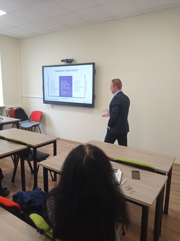 Pranešimuose buvo svarstomos šių dienų aktualijos, kurios itin svarbios VIKO Ekonomikos fakulteto studentams darbinantis, o patekus į įmonę – išlikti ilgiau nei tris bandomuosius mėnesius.