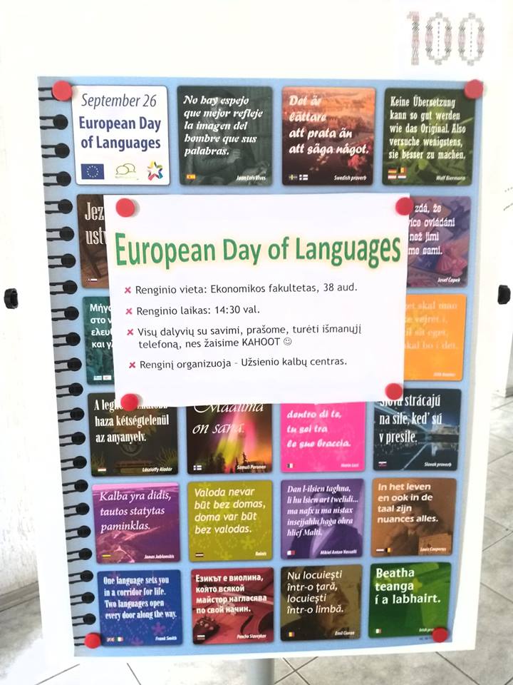 Europos Tarybos iniciatyva daugelyje šalių minima Europos kalbų diena. Vilniaus kolegijos, Užsienio kalbų centro kalbininkai, kiekvienais metais žaismingai ir įdomiai mini šią kalbų šventę.